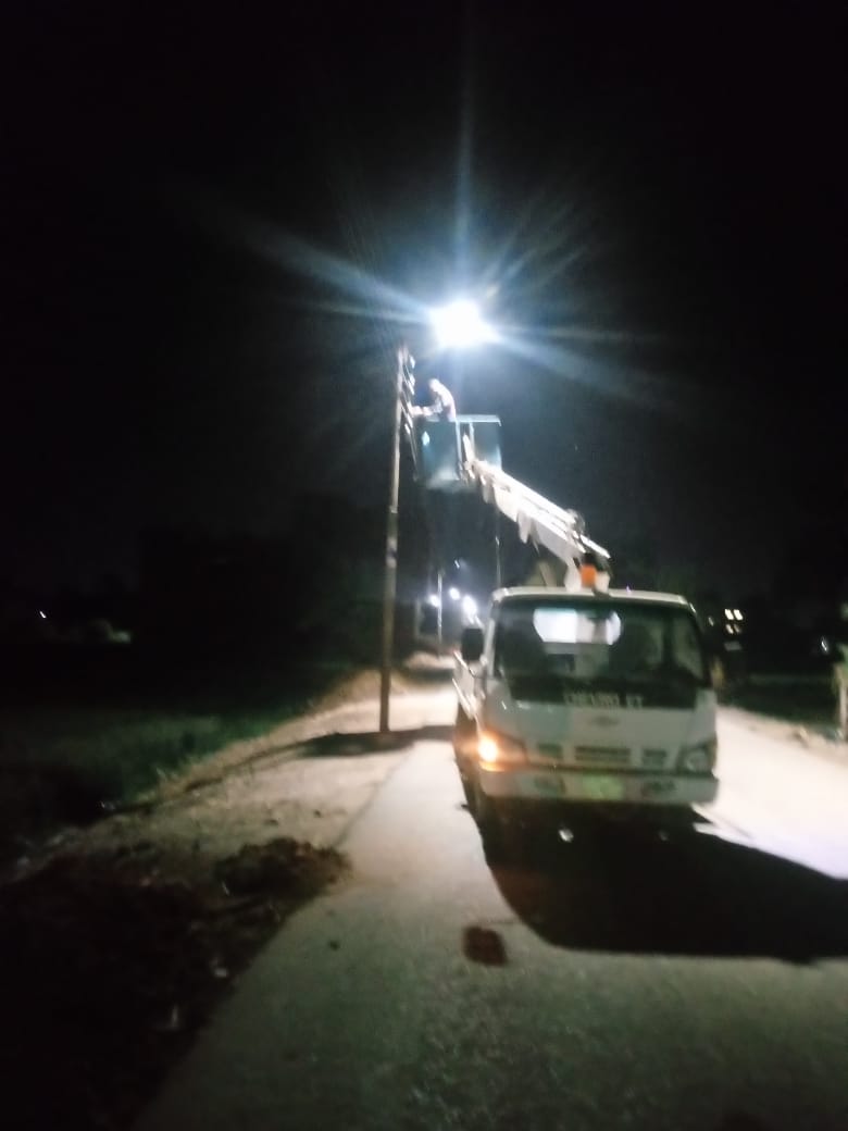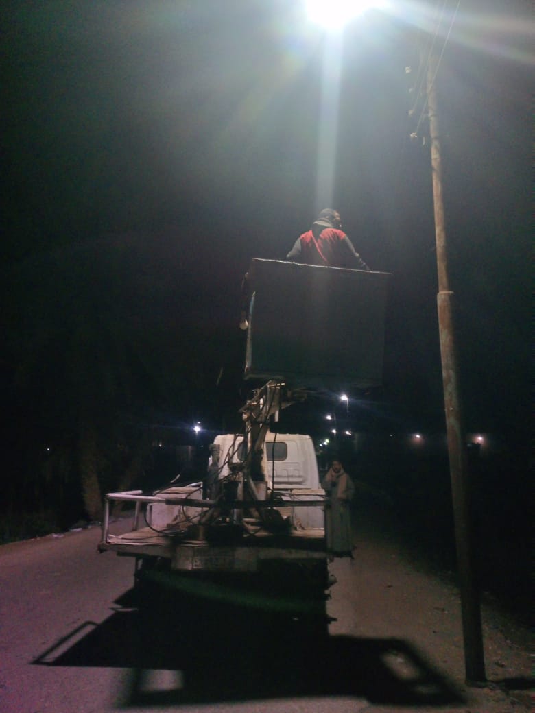 الوحدة المحلية بقرية إدفا أعمال الإنارة صيانة الكشافات